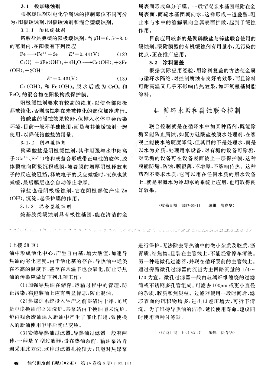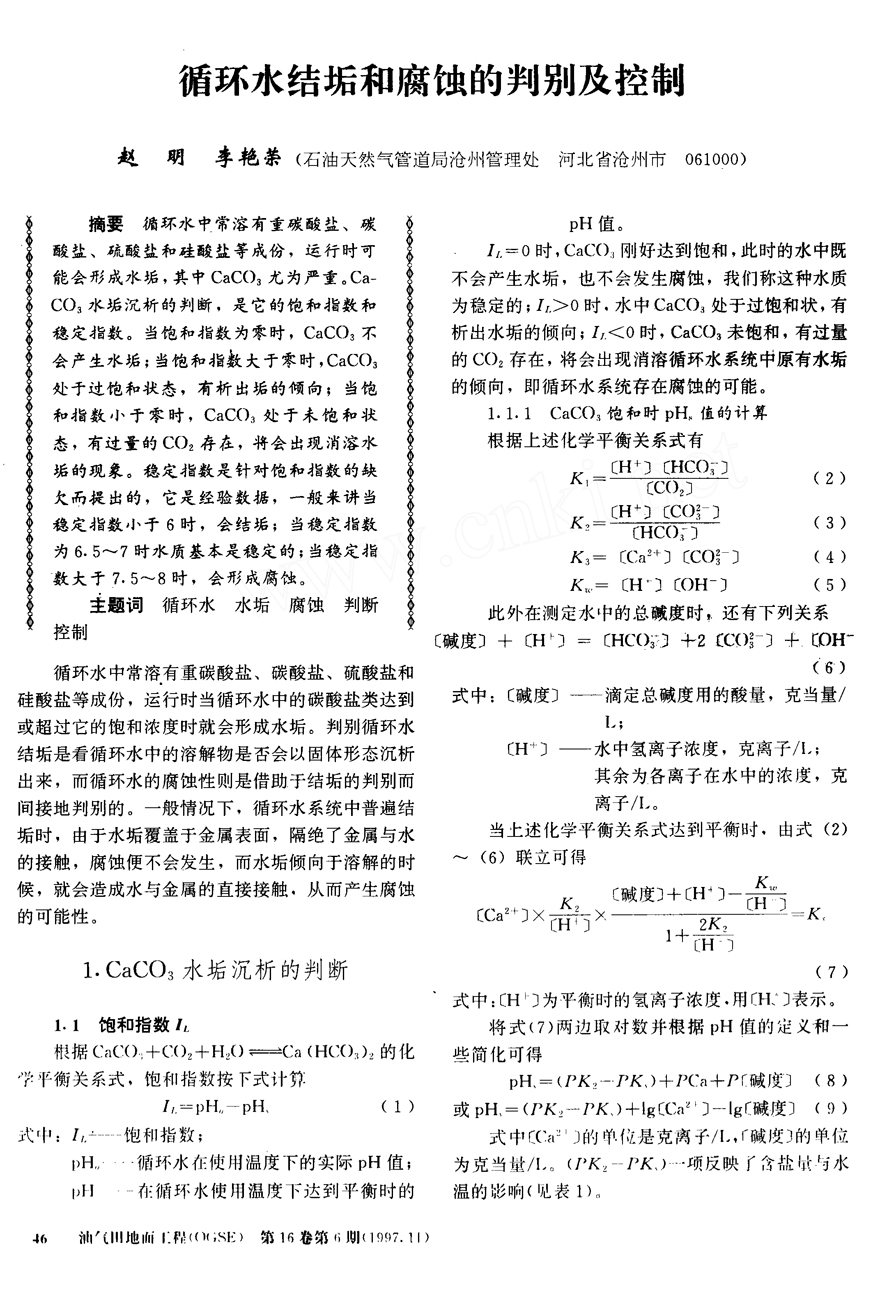 循環(huán)水結(jié)垢和腐蝕的判別及控制